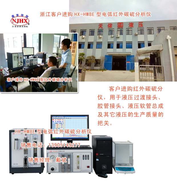 宁波天依液压器材有限公司成立于2003年11月,是代化的专业液压件制造企业,国内知名的液压连接件专业制造厂,专业设计、制造液压过渡接头、胶管接头、液压软管总成及其它液压附件。该公司产品涵盖工程机械、矿山机械、石油机械、冶金、船舶、风电、军工装备等各行业,在行业内拥有良好的声誉和口碑。这次为抓产品质量特从南京华欣分析仪器制造有限公司进购一台HX-HW8E型电弧红外碳硫分析仪,该仪器可以检测高中低合金钢,碳钢、不锈钢、石油催化剂等材料中碳硫元素含量的,特别对于超低碳的检测更是有超强的能力。